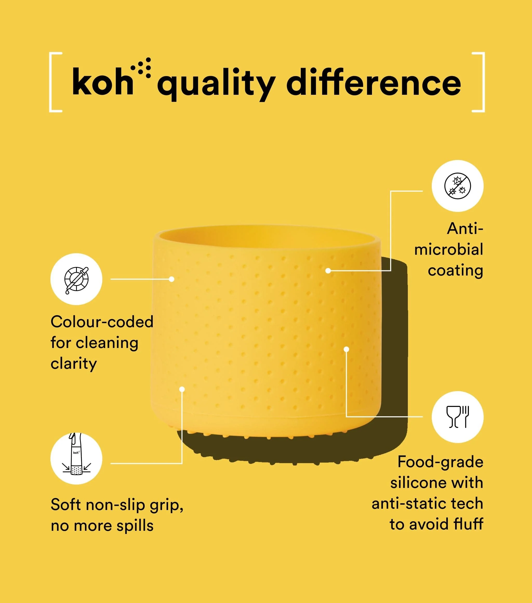 Soft silicone yellow bumper - no more spills, mix-ups, or sudsy confusion at the sink.